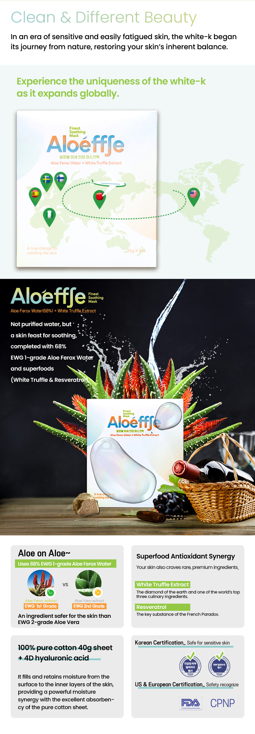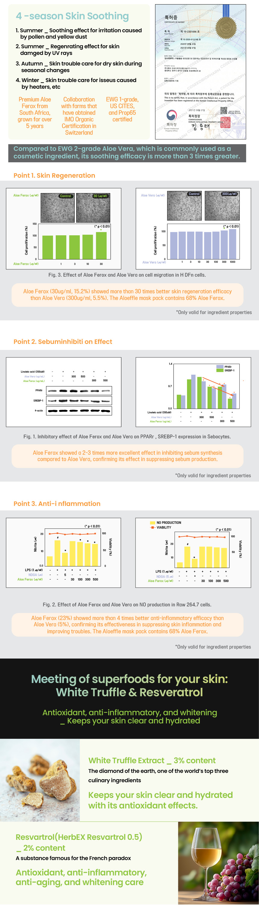Crafted with 68% EWG Grade 1 Aloe Ferox Water instead of purified water, this mask delivers direct care with superfood ingredients like white truffle and resveratrol.